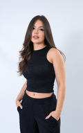 Su silueta ajustada con cuello redondo y sisas anchas lo convierten en el match perfecto para combinar con faldas, pantalones o sets tejidos. Una prenda atemporal que se adapta a ocasiones casuales, de oficina relajada o incluso de noche.