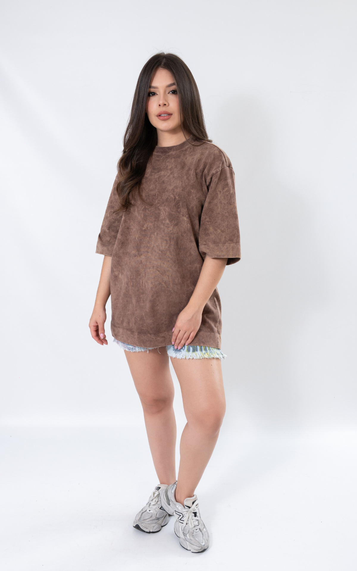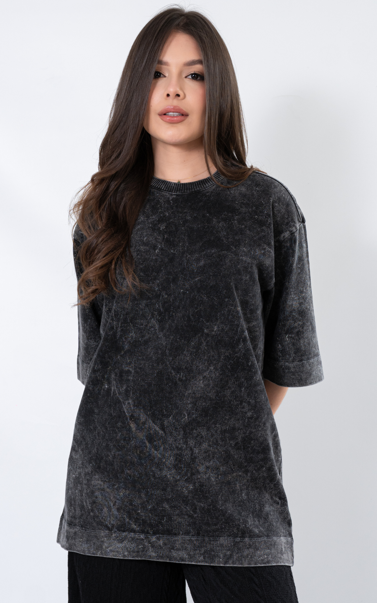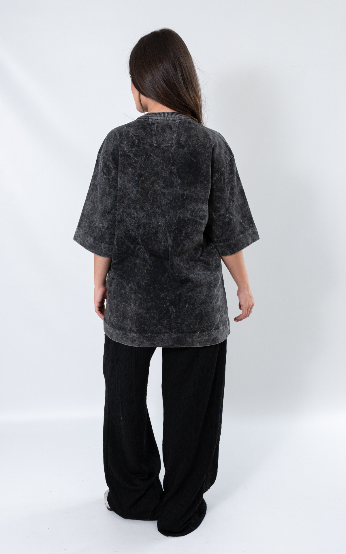 Nuestra T-shirt Oversize Washed Effect es la prenda que redefine la comodidad con estilo. Diseñada con un fit amplio y relajado, está confeccionada en algodón suave de acabado desgastado tipo TIE DIE, que aporta un aire urbano y moderno.