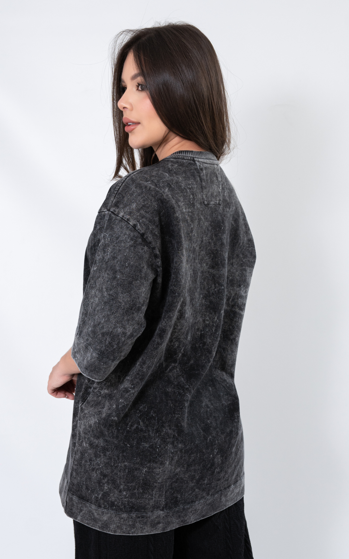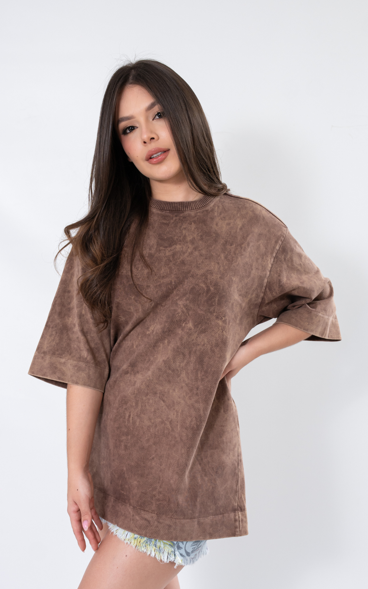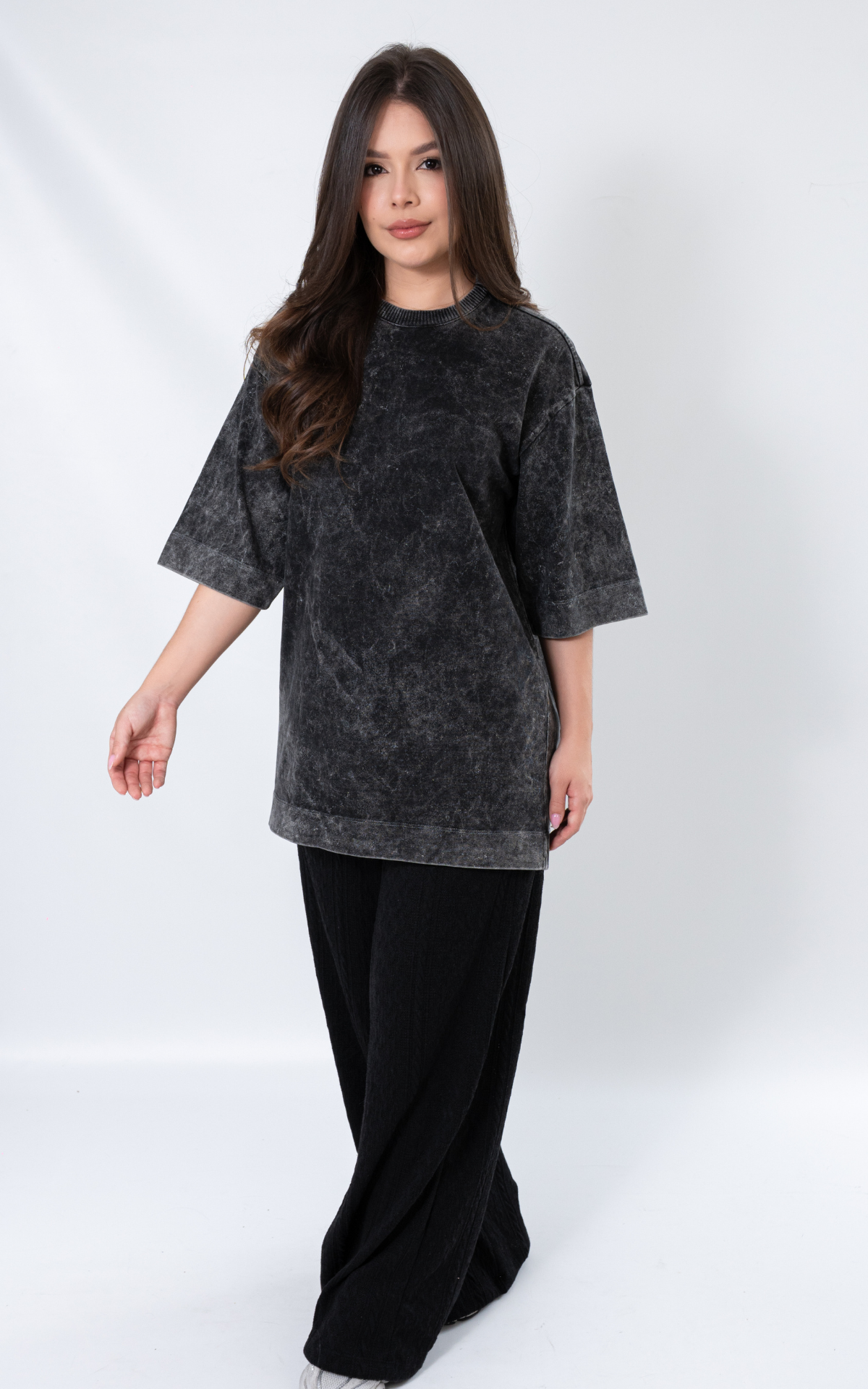 Nuestra T-shirt Oversize Washed Effect es la prenda que redefine la comodidad con estilo. Diseñada con un fit amplio y relajado, está confeccionada en algodón suave de acabado desgastado tipo TIE DIE, que aporta un aire urbano y moderno.