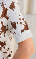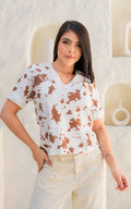 Con un diseño tipo “manchas” en tonos tierra que la hacen única, un escote en V favorecedor y mangas con dobladillo delicado, esta pieza está pensada para las mujeres que aman lo natural, lo cómodo y lo auténtico.