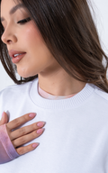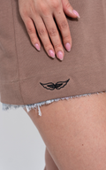 Disponible en colores neutros que elevan cualquier look, cuenta con cuello en rib para mayor durabilidad y un delicado bordado de alas en la parte inferior que simboliza libertad y estilo propio.