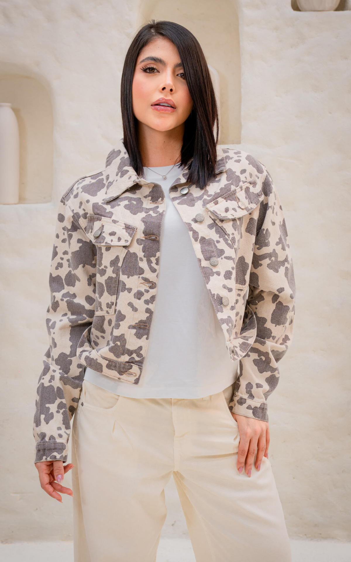 La Chaqueta Season es esa pieza protagonista que transforma cualquier look. Su diseño estampado vaca, en tonos tierra aporta un toque urbano y auténtico, perfecto para mujeres que aman verse diferentes sin esfuerzo.