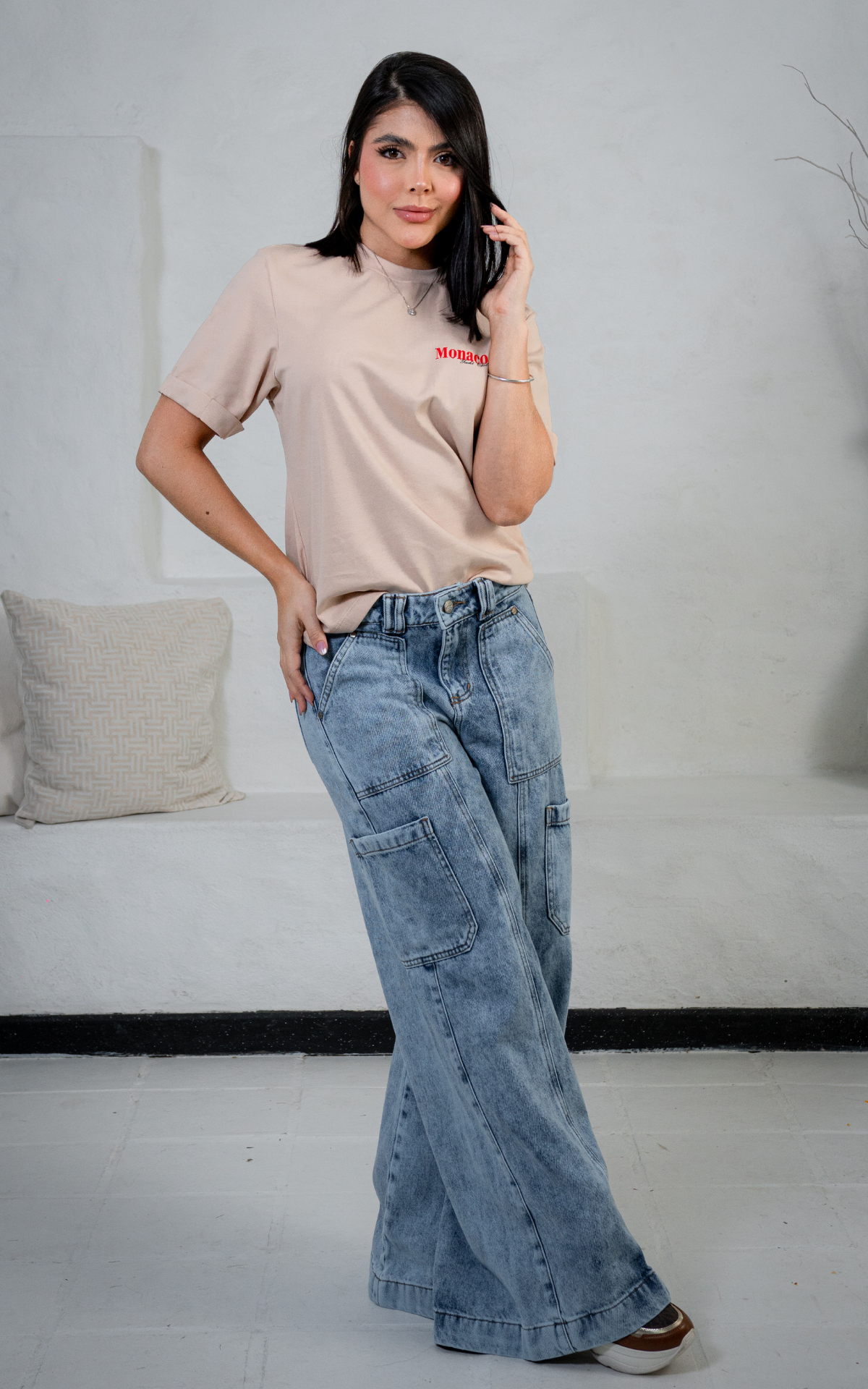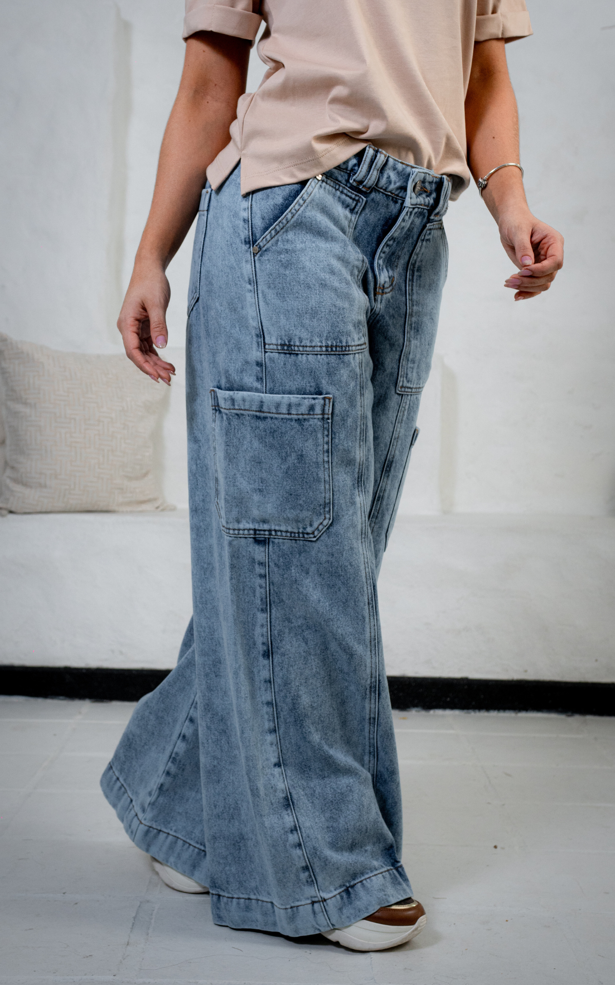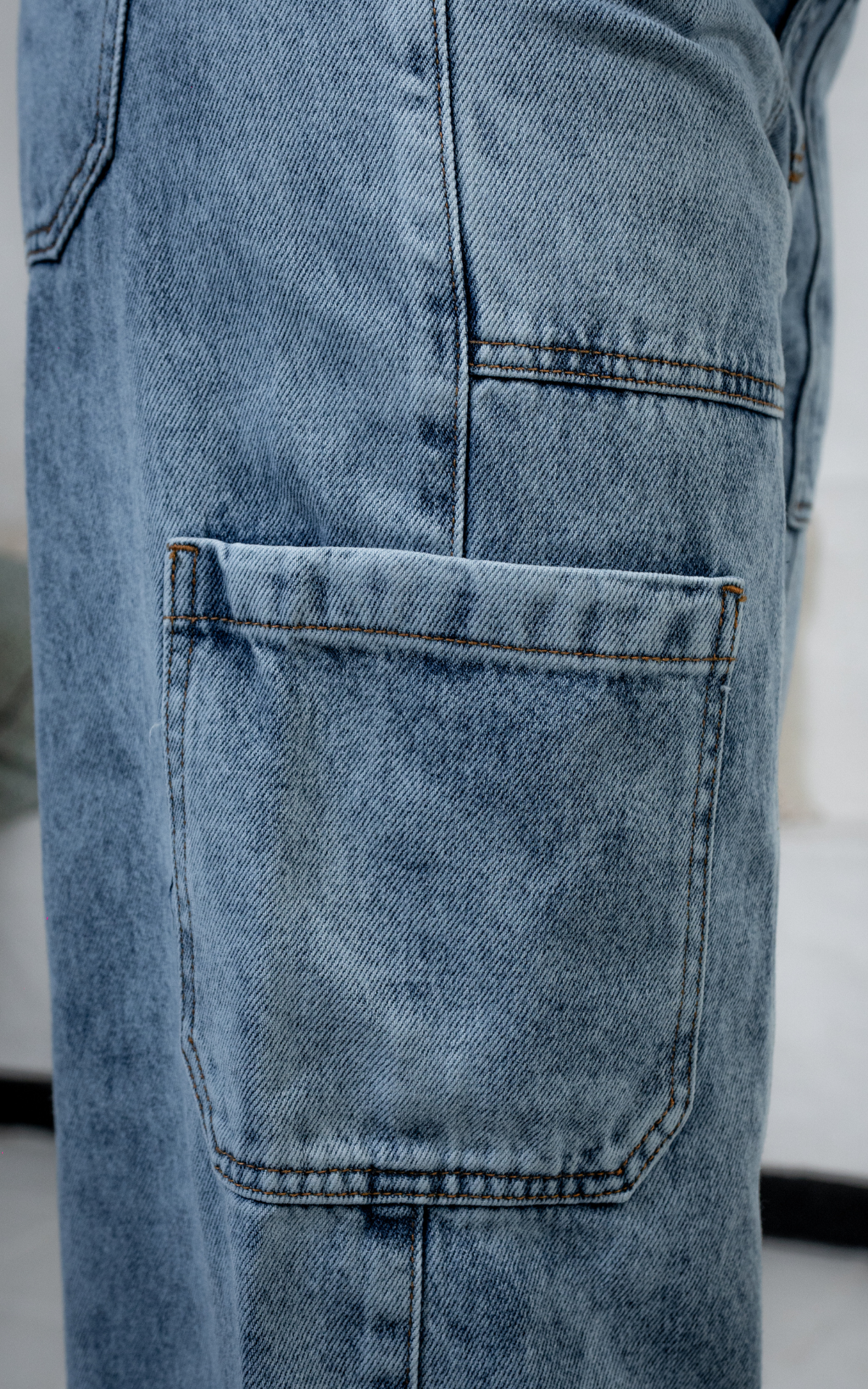 Fabricado en denim suave con un lavado desgastado que lo hace súper combinable y versátil, ideal para crear looks urbanos y relajados sin perder el toque chic.