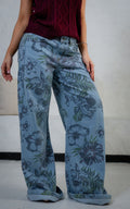 Su estampado floral en denim de tono medio lo convierte en una pieza original, vibrante y perfecta para mujeres que aman expresar su esencia a través de la moda.