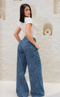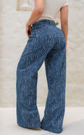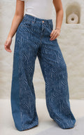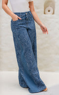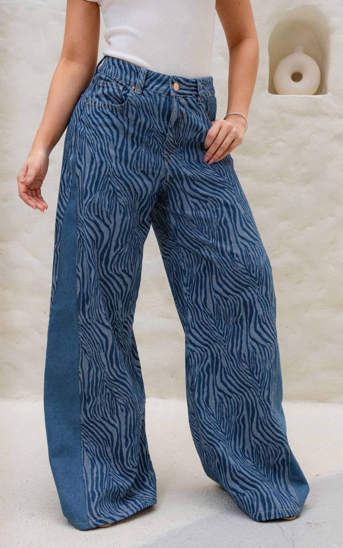 Nuestro Jean Wind está diseñado para mujeres que aman destacar con autenticidad. Su estampado animal tipo zebra denim le da un toque moderno y arriesgado, mientras que su silueta wide leg estiliza la figura y aporta comodidad absoluta en cada movimiento.